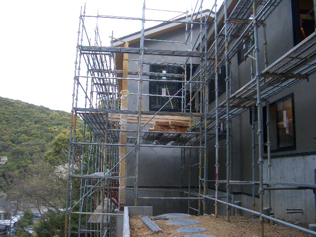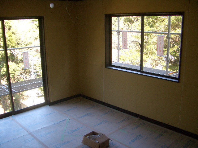 外壁の下塗りが終わって、部屋の中も着々と工事が進んでました。