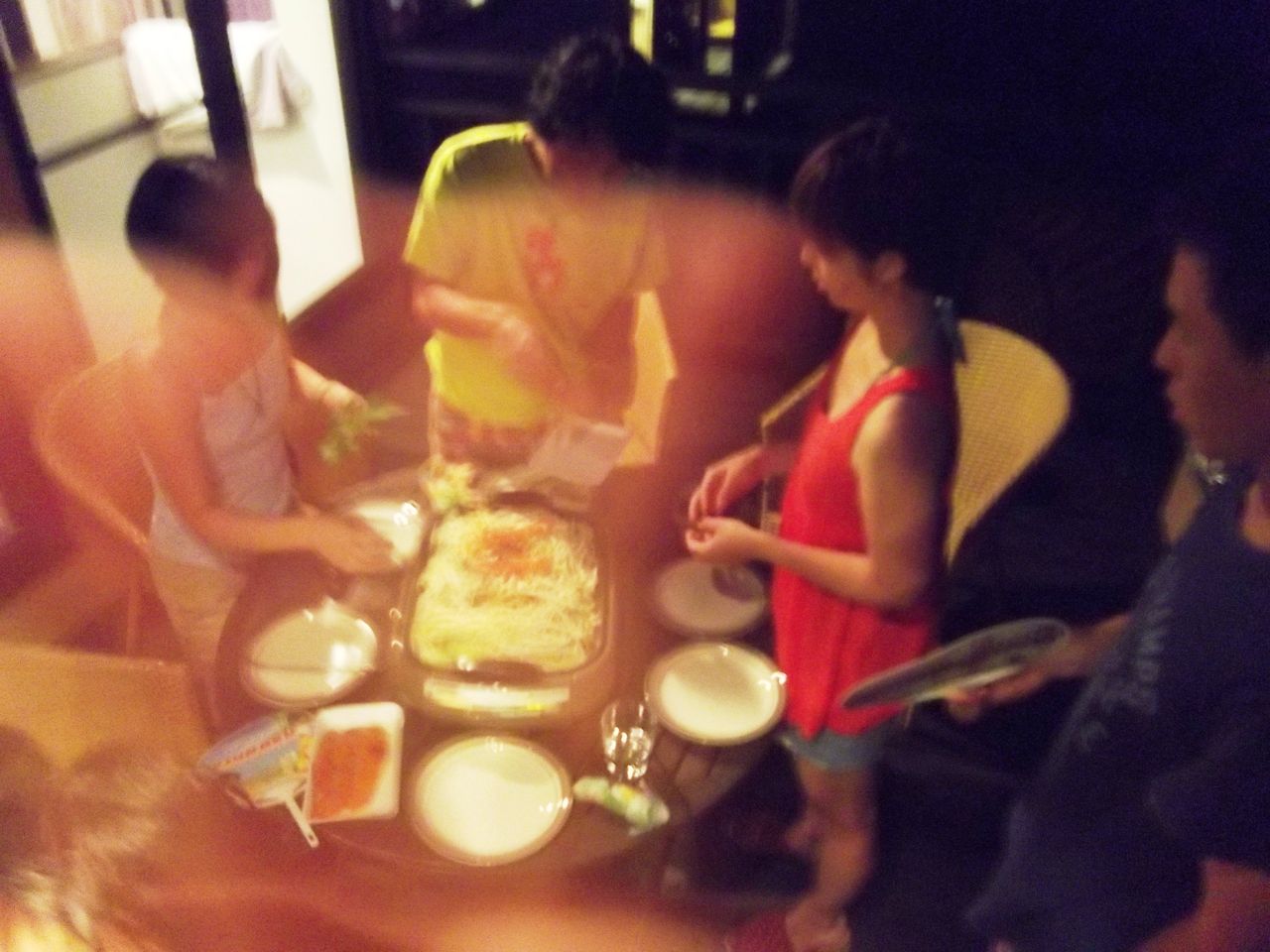 ヒリゾ浜で泳いでお疲れのようで、夜のダイニングには登場しませんでした。
