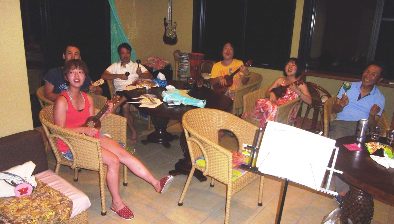 ダイニングでは、ウクレレでいろいろな唄をみんなで歌いました。