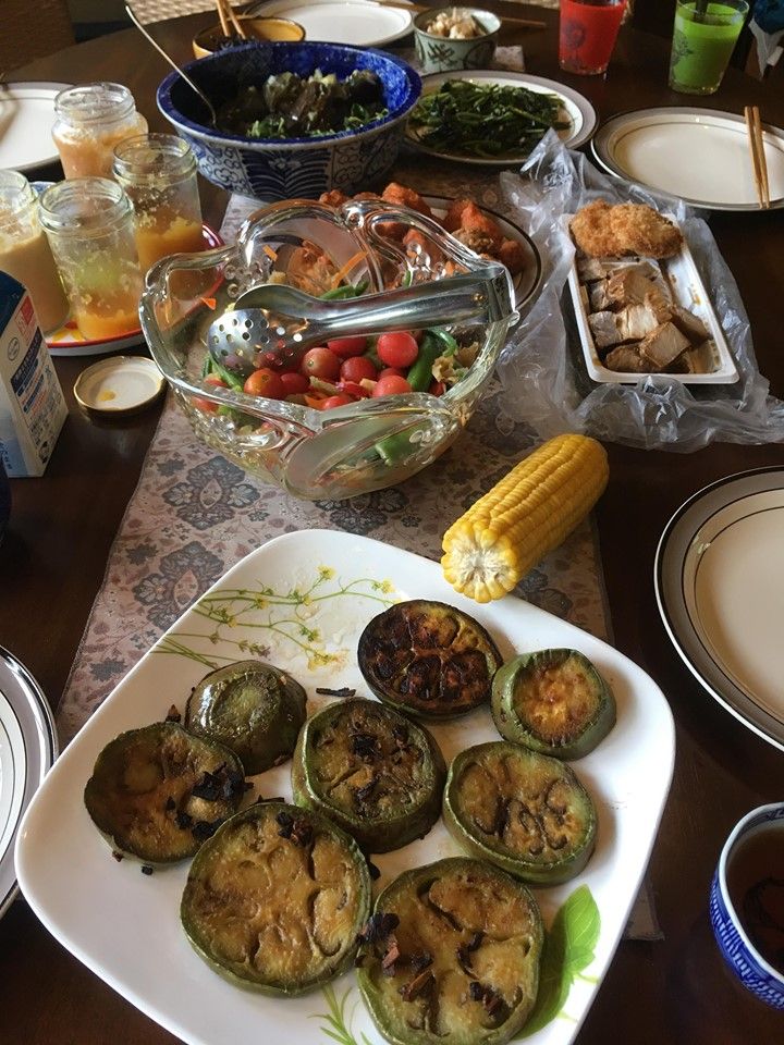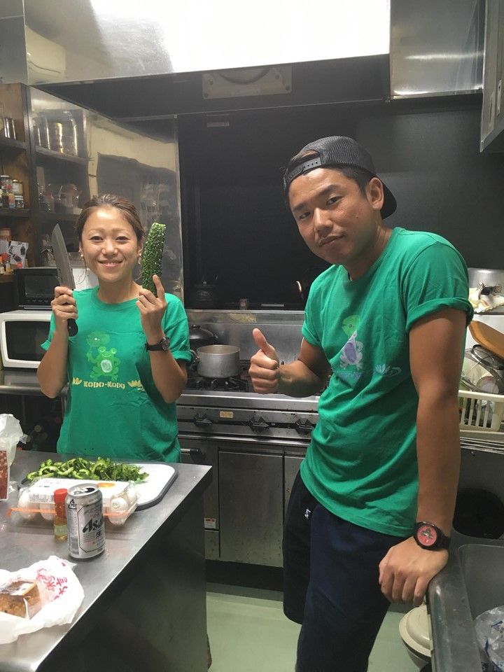 沖縄帰りのおふたりは、ゴーヤチャンプルー
