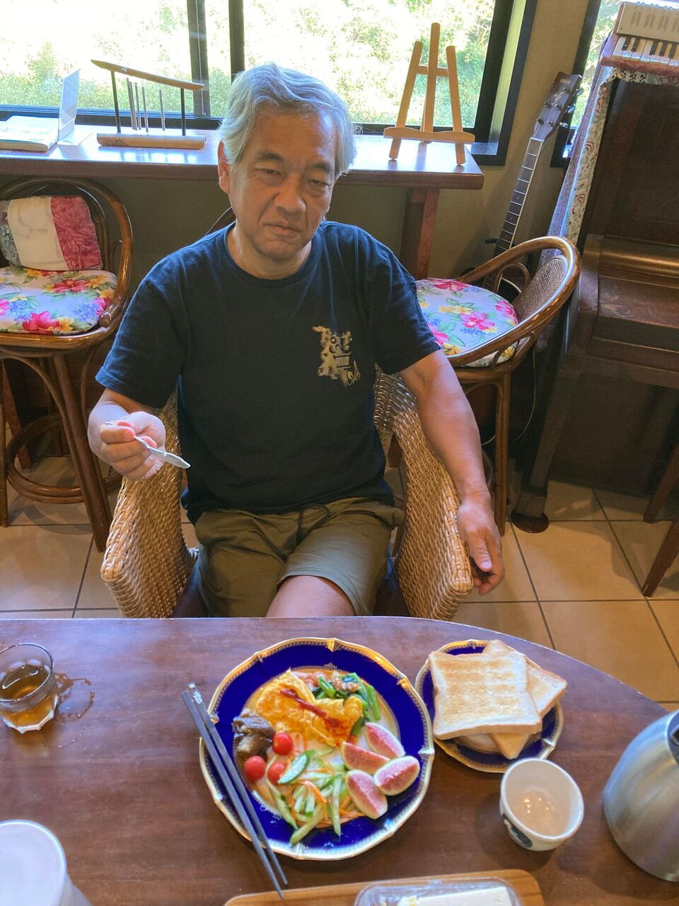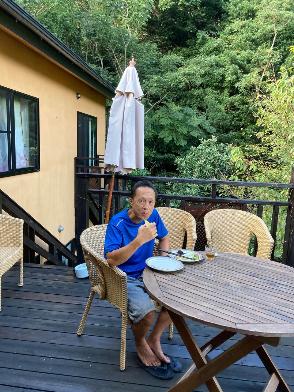さすがの浜ちゃんも、ベランダであさごはん。