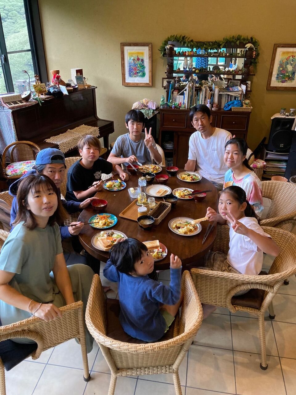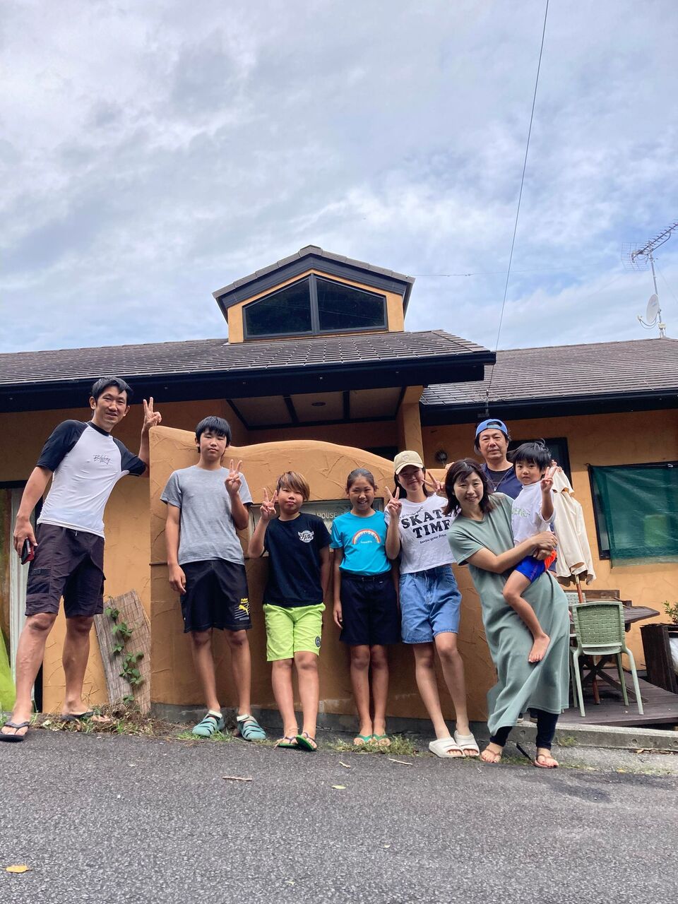 朝ごはんの後に、ベランダで記念写真。