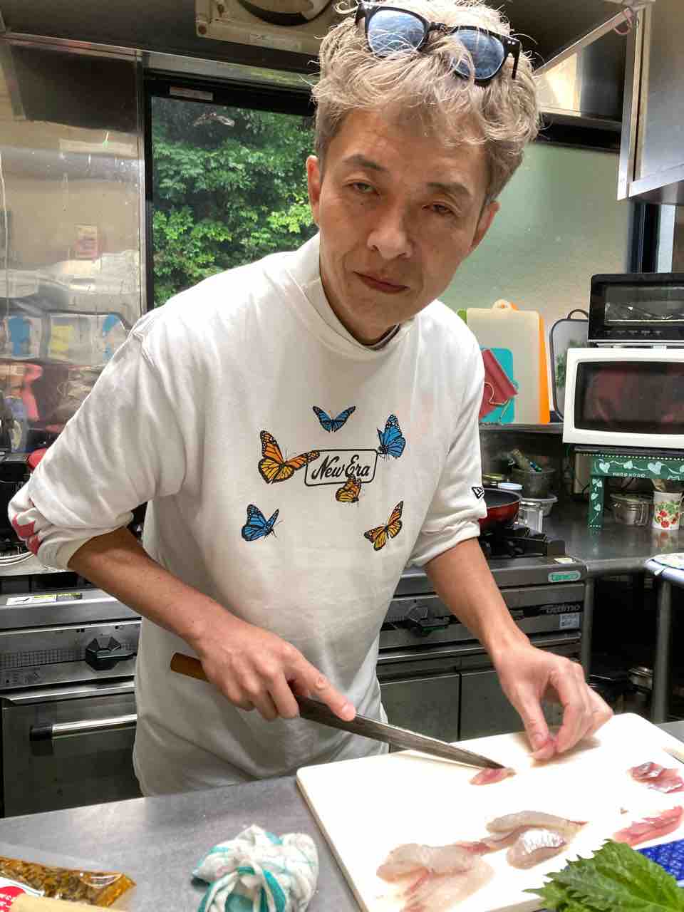 湯の花で買った魚をさっそく捌いてます