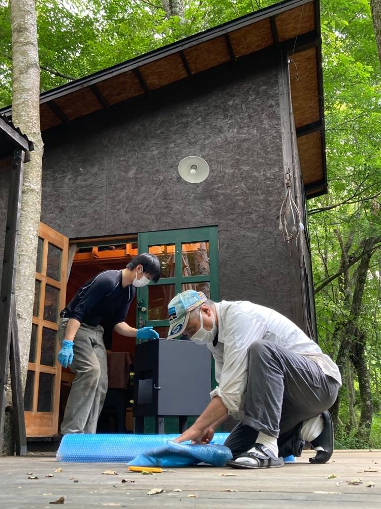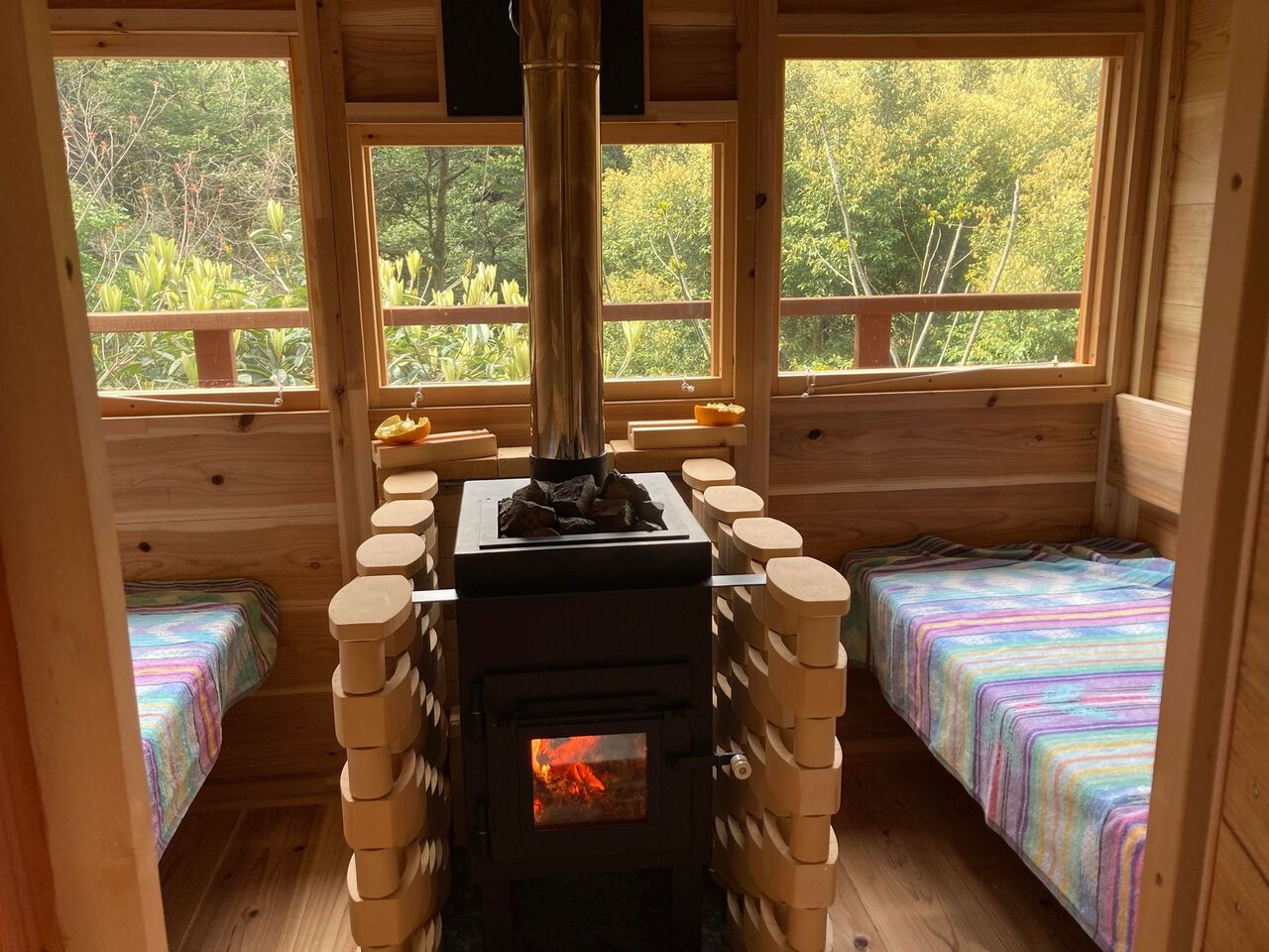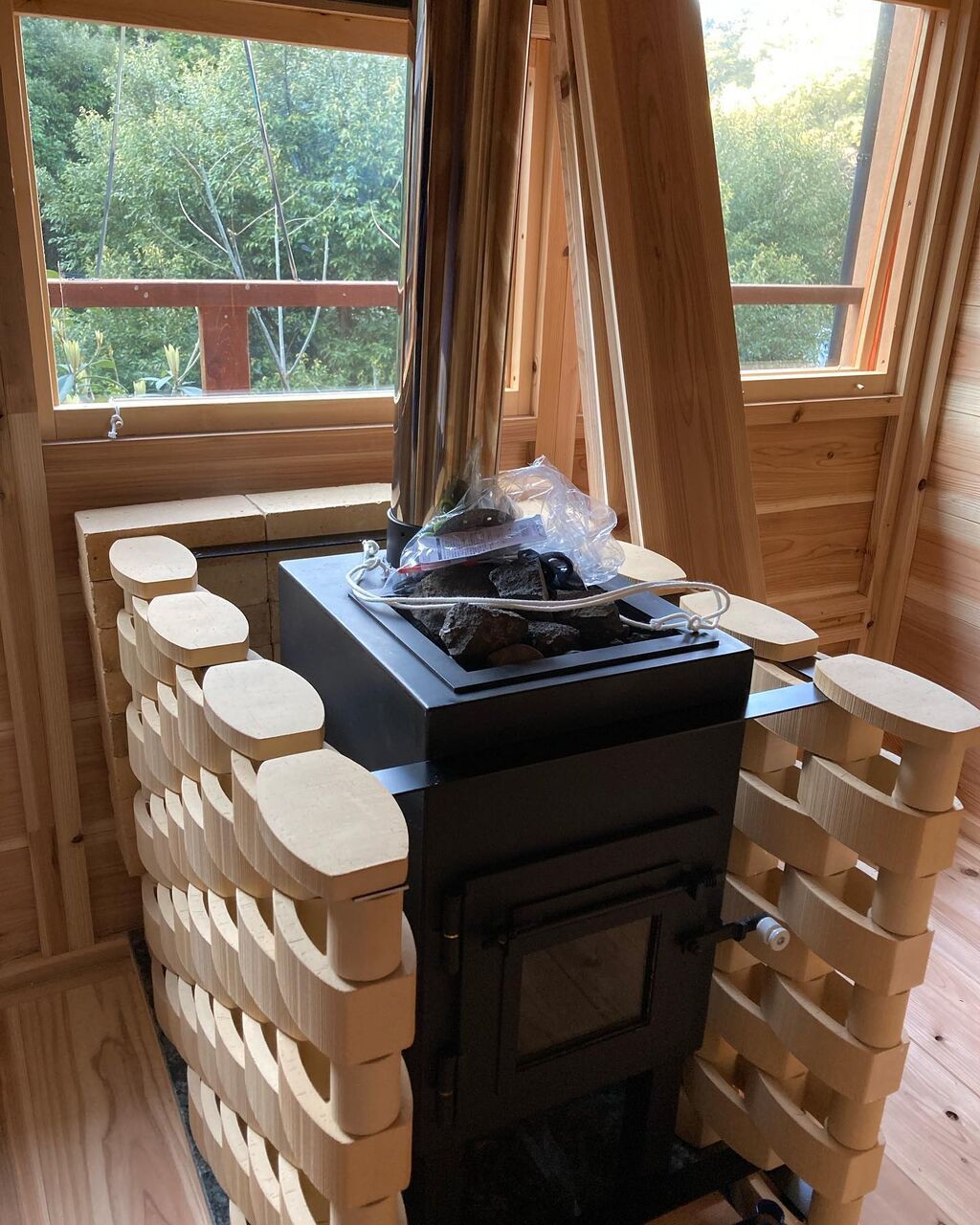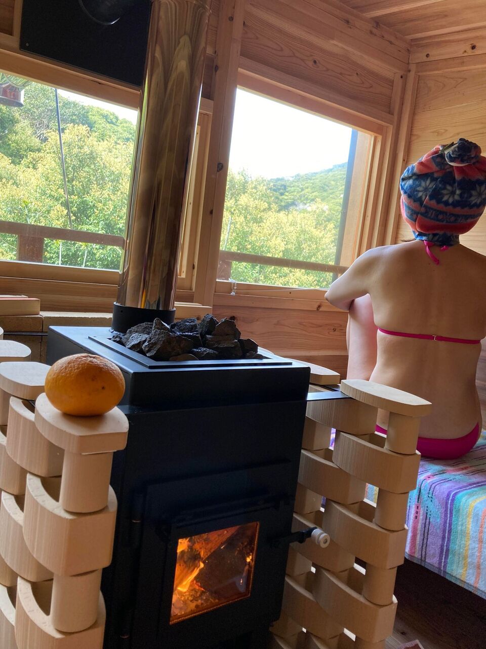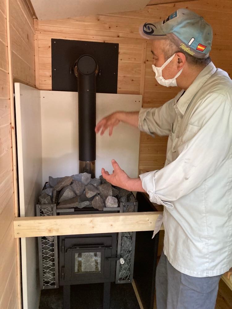 ストーブの説明やサウナ小屋の説明をしてもらい